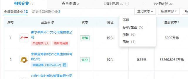 他名下关联的12家企业,仅有5家为存续状态,其余的都注销或者吊销了,而存续的公司中也有多家存在问题。